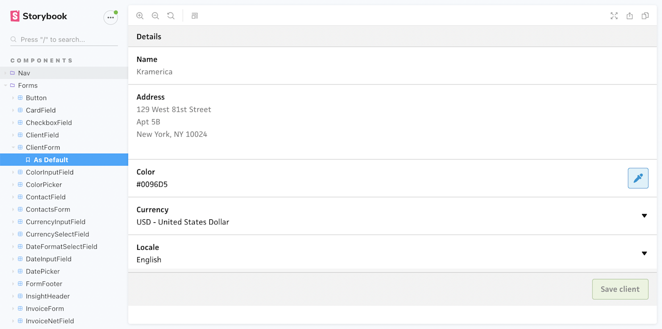Keeping API requests out of the form components lets me build the entire invoice form within a sandbox, like Storybook. Then, I can handle the submit event however I want—independent of a remote backend. If I want to build a “demo” version of the app that stores everything within a local session, like my “test mode” idea, I can easily wire the submit event to a local store instead of the API.
