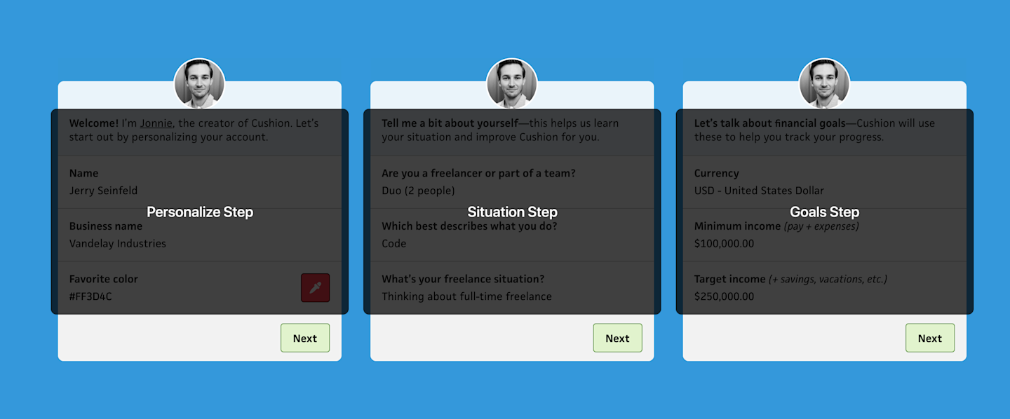 This past weekend, I was once again gearing up to launch the new onboarding for Cushion. The onboarding transitions between each step by sliding the text and form fields out while the new ones slide in. Early on, I assumed too much about future modal designs, so I created separate header and content slots to specify the text for the header slot and specify the fields for the content slot. This, however, forced me to keep all of the steps’ text and fields in a single OnboardingWindow component that had two separate “tracks” to transition the text and the fields.