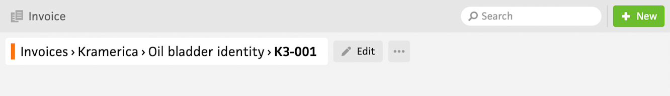 In the new system, the top nav bar actually provides the perfect height to sneak the breadcrumbs under the title, which makes perfect sense for the overall grouping and hierarchy. Compare this to the existing invoice page, where the breadcrumbs are actually in a subview of the top nav bar, which creates a bit of separation along with a cluttered feel from the “edit” button and dropdown.