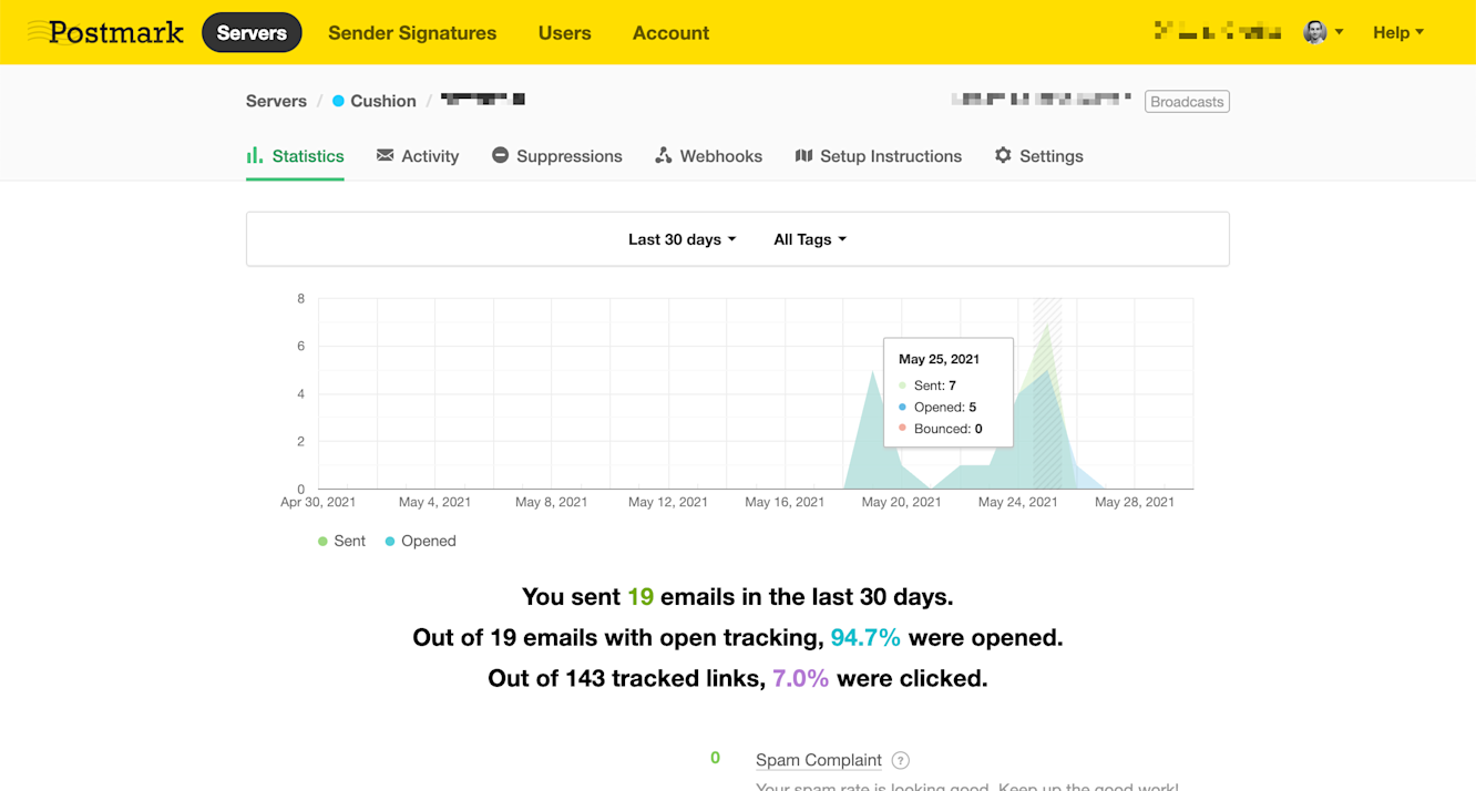 For everything email, I use Postmark. Up until recently, they only supported transactional emails, but now they support sending newsletters, too. This made my life 10x easier as I was able to simply create a new “message stream” in my Cushion account, then call a single method that sends the emails. After sending a few test emails, I had ear-to-ear smile—the email looked exactly like the preview, and exactly what I’ve always envisioned.